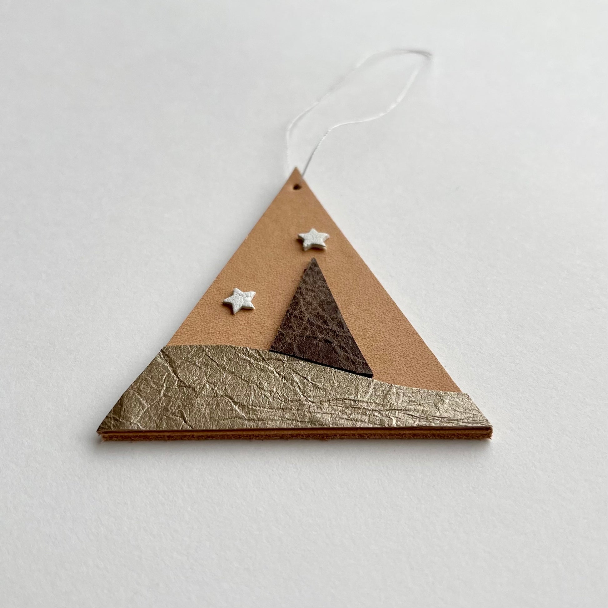 Scandi leather hanging decoration. Mix and match with your favourite decorations to create a unique tree or garland display.