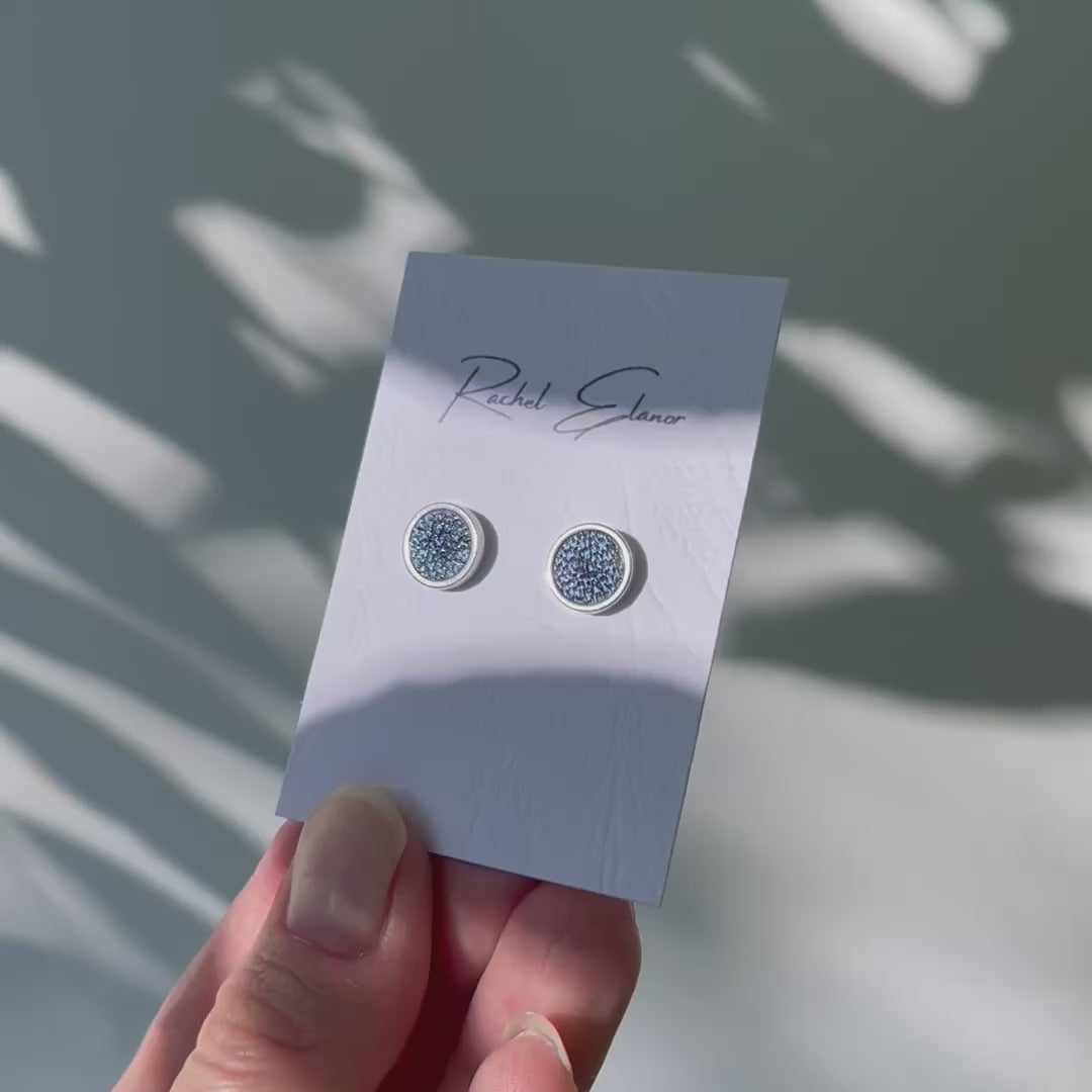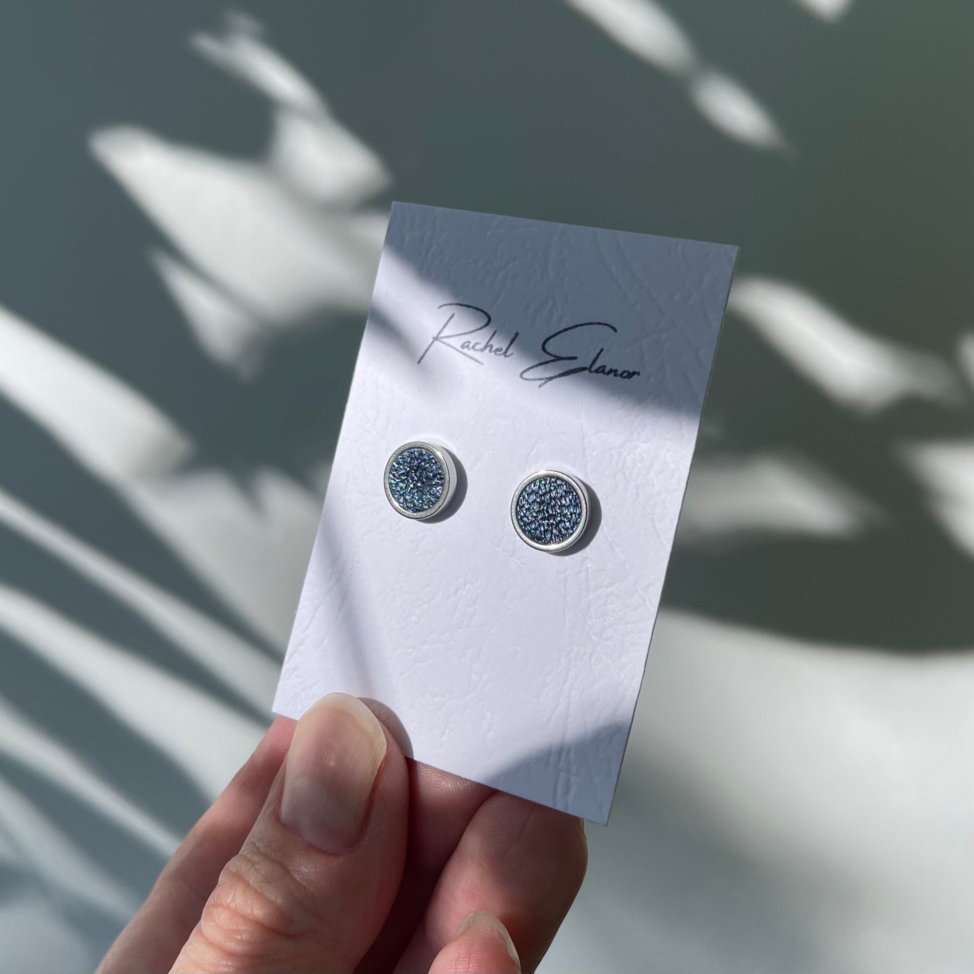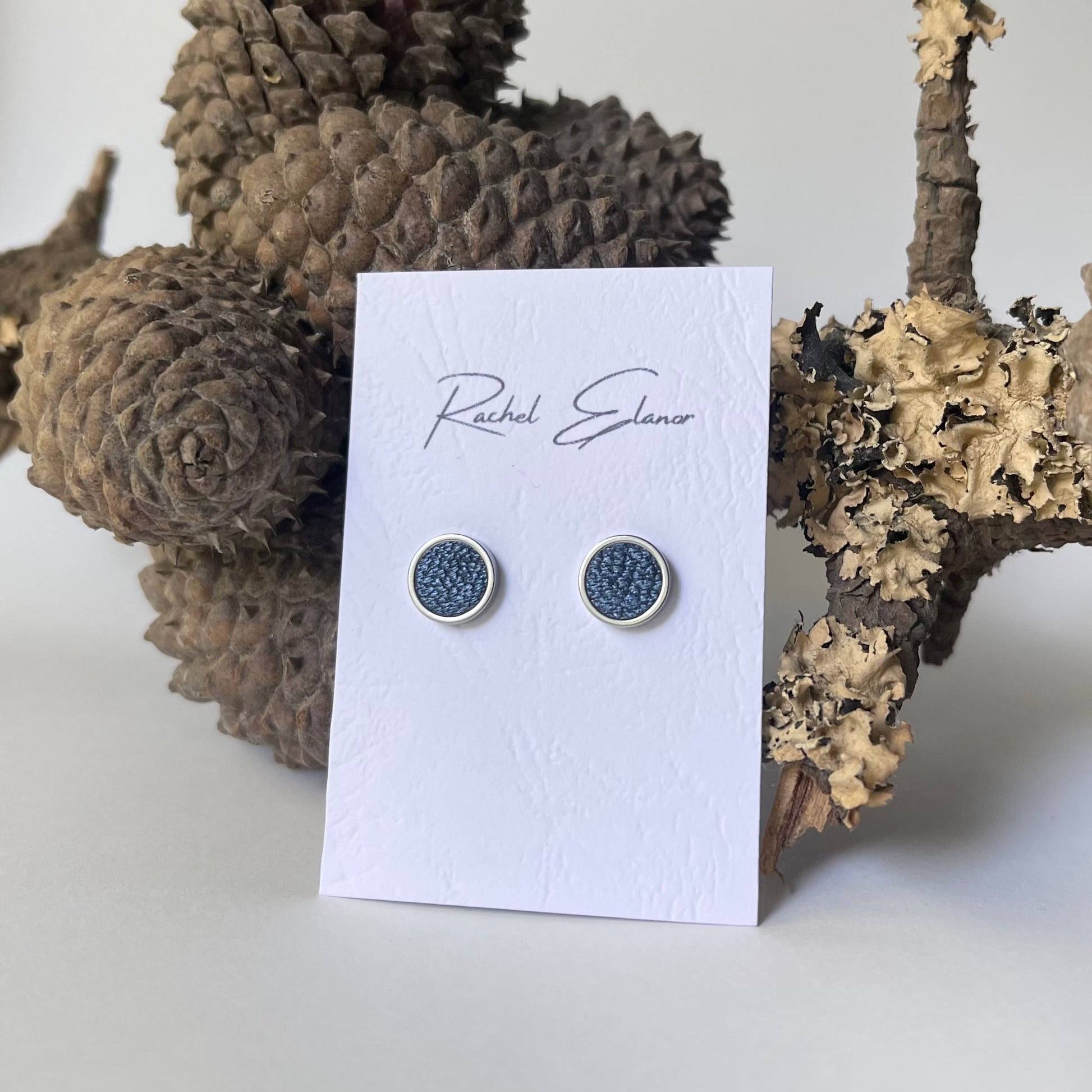Dark blue leather stud earrings with a pearl finish to add a little extra shimmer for the ultimate all-day earring. These studs were designed with comfort in mind being incredibly lightweight and made with hypoallergenic surgical steel so even the most sensitive of ears can enjoy them for hours on end.