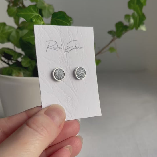 Silver-blue leather stud earrings with a pearl finish to add a little extra shimmer for the ultimate all-day earring. These studs were designed with comfort in mind being incredibly lightweight and made with hypoallergenic surgical steel so even the most sensitive of ears can enjoy them for hours on end.