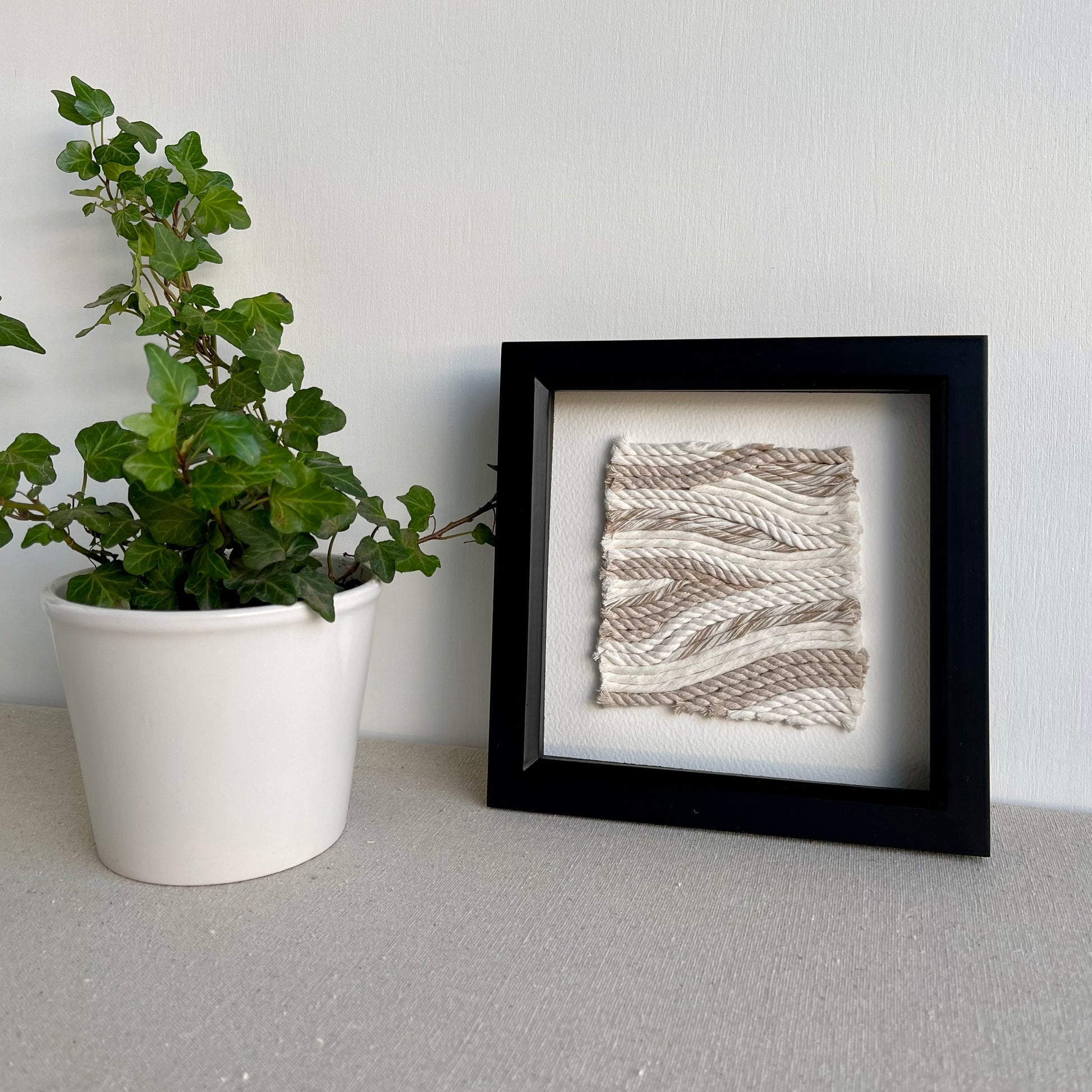 Capturing the quiet beauty of shifting sands, this textured framed fibre art mirrors the graceful curves and undulating ripples left behind by the sea. The natural, earthy tones invite warmth and tranquility, making it a perfect addition to a mindful, serene interior.