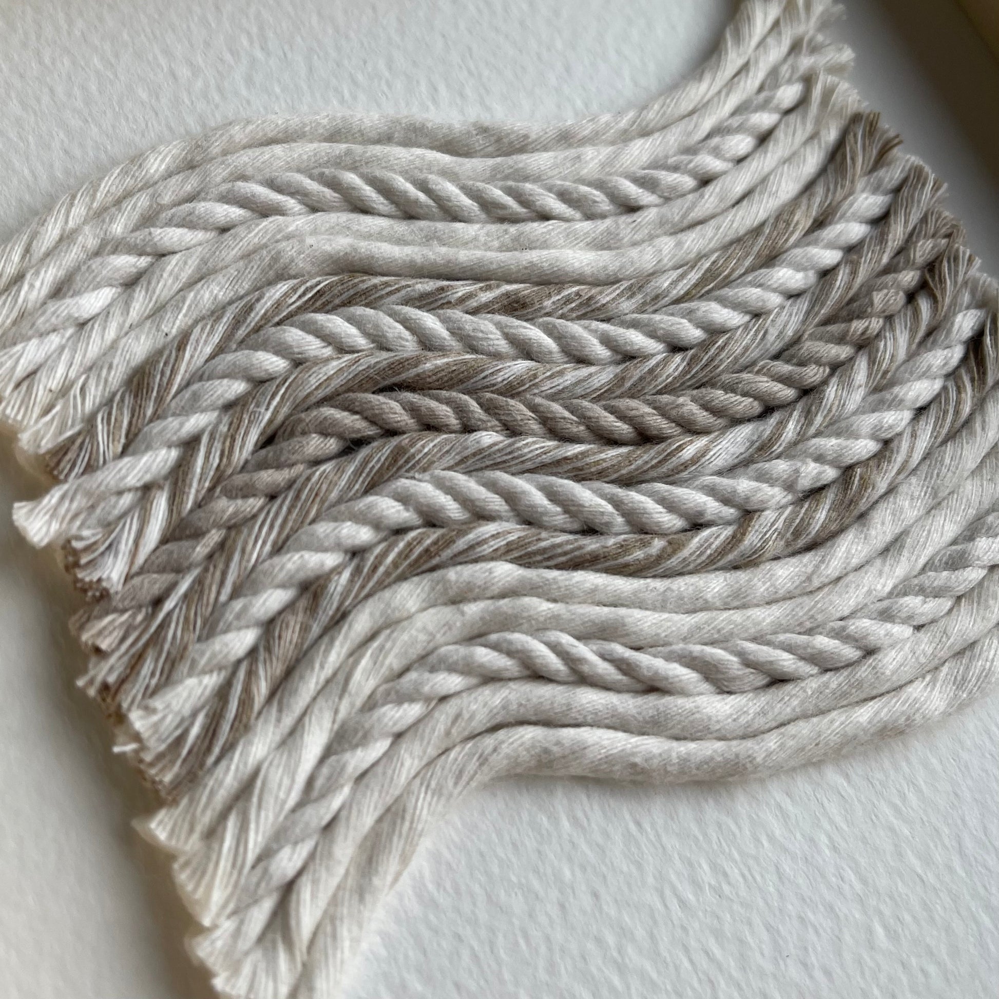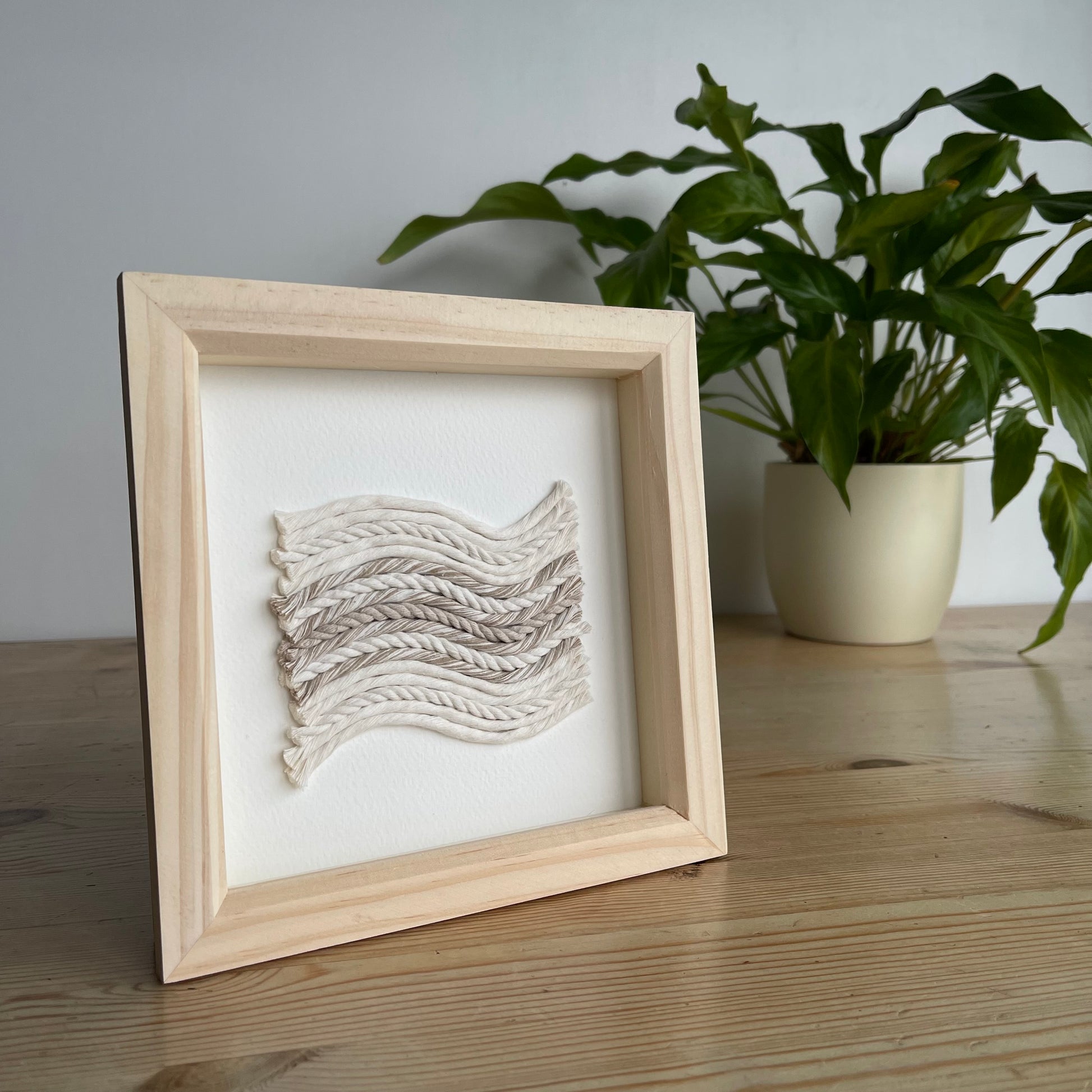 Made with recycled cotton cord, mounted on acid free card and framed in a natural pine wooden deep box frame with hanging hook. Please note photos are taken without the glass due to reflections, but the frame will come with the glass in place.